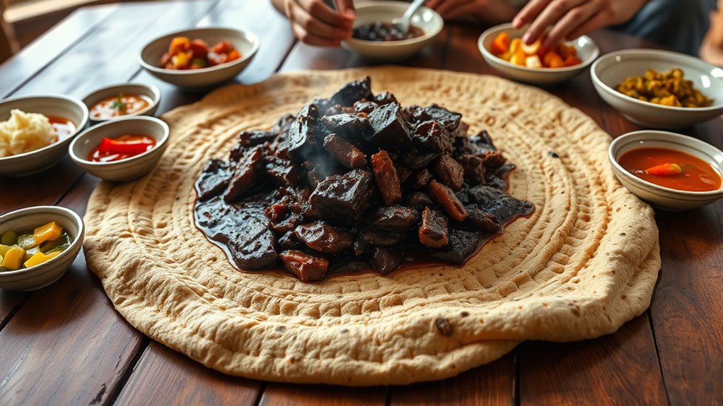 As you share injera and wot with others, you become part of Ethiopia’s rich communal tradition. Nearly 80% of Ethiopians still gather around the same table, emphasizing unity and togetherness. This tradition isn’t just about food; it’s about connecting hearts and fostering community. So next time you enjoy injera and wot, remember you’re tasting a centuries-old bond that brings people together, one delicious bite at a time.