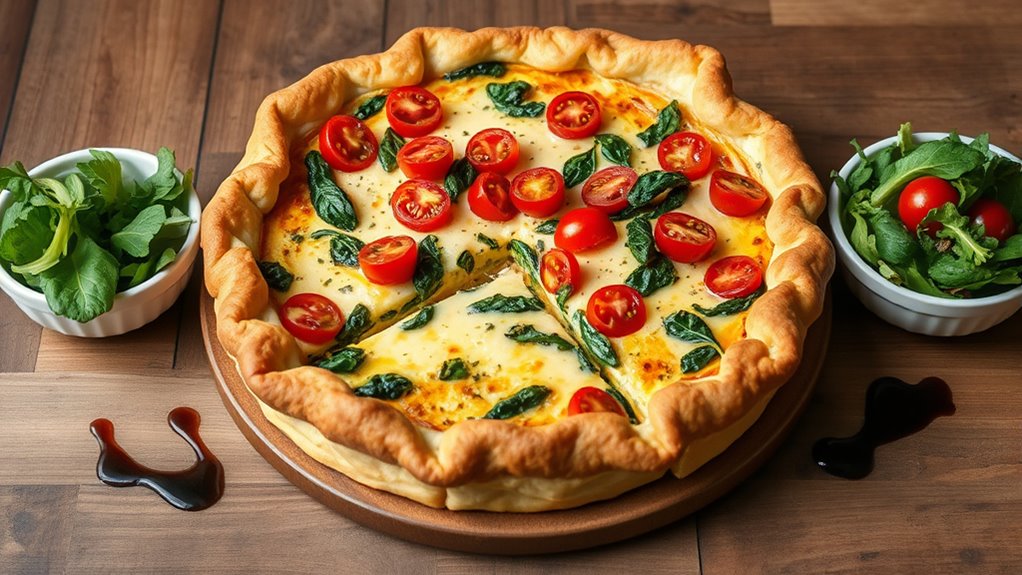 In essence, transforming a basic quiche into a culinary canvas takes little effort but offers endless possibilities. With the right quiche dough and a variety of savory fillings, you can craft a dish that’s elegant, satisfying, and tailored to any palate. It’s a light, savory lunch option that’s as versatile as it is delicious. Additionally, understanding the importance of versatile ingredients can help you further customize your quiche to suit any dietary preference or occasion.