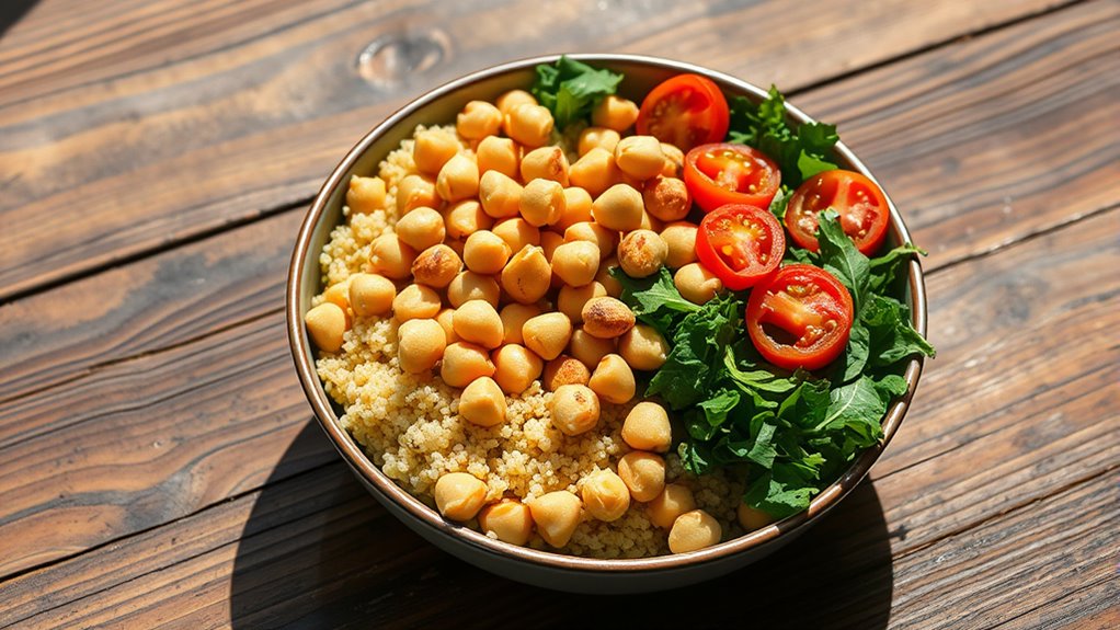 Try creating your own high-protein lunch bowl today, like Sarah did during her busy workweek. She combined quinoa, chickpeas, and greens, and found it kept her energized through afternoon meetings. You’ll love how easy it is to customize with your favorite veggies and dressings. Plus, knowing you’re fueling your body with nutrient-packed ingredients makes lunchtime something to look forward to. Give it a shot — your taste buds and energy levels will thank you!