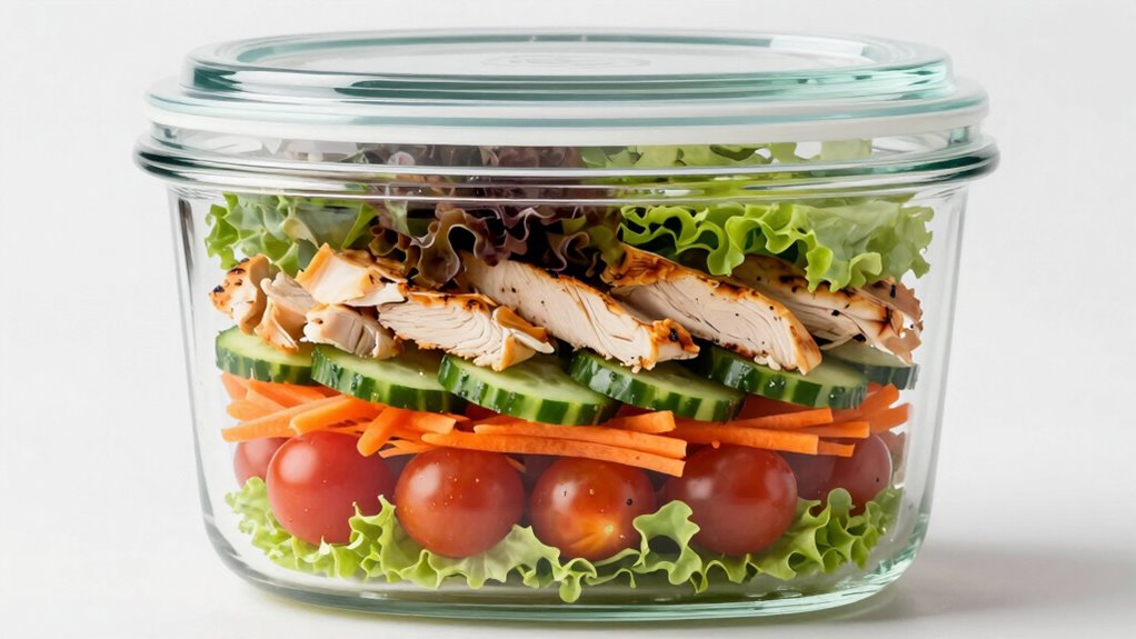 - Keep wet ingredients or dressings in separate, sealed containers to avoid sogginess.