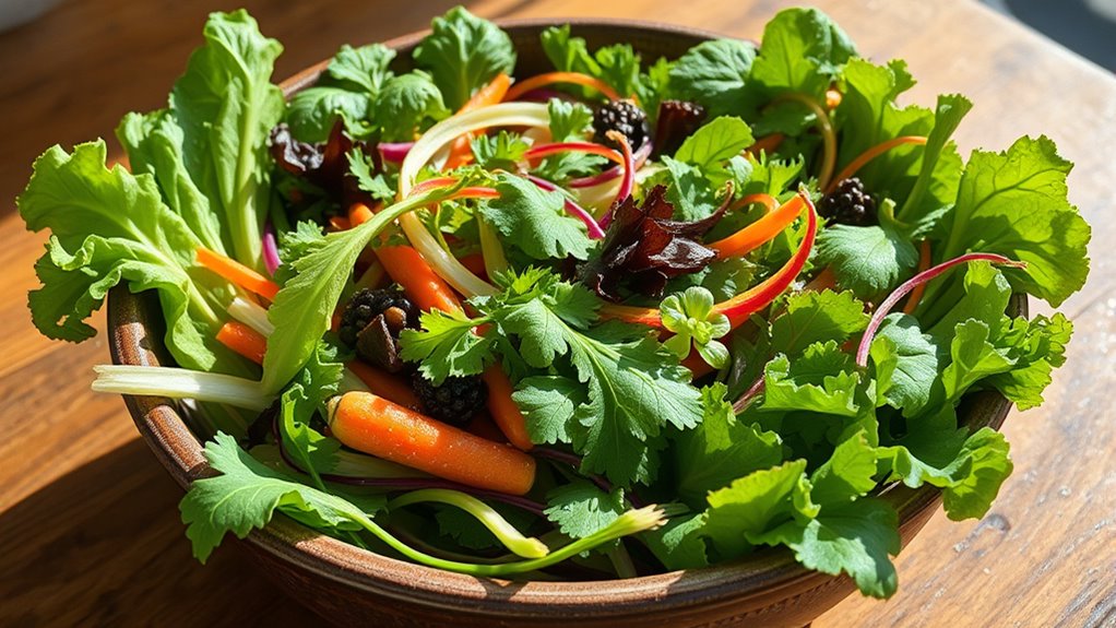 Focusing on seasonal produce makes it easier to practice zero-waste salad habits because these ingredients are usually more abundant and affordable. When you buy seasonal vegetables, you’re also supporting local farmers and reducing your carbon footprint. Use the entire plant when possible—stems, leaves, and scraps—rather than just the parts you’re used to eating. This approach not only minimizes waste but also enhances the sustainability of your eating habits. With a little planning, you can turn what might seem like waste into valuable ingredients or compost, helping you live more eco-consciously without sacrificing flavor or nutrition.