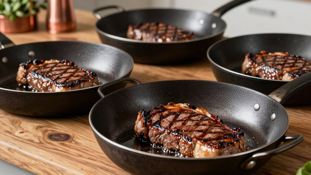 Choosing the right carbon steel pan can truly elevate your steak game. Whether you prefer a classic skillet or a grill pan, these options deliver exceptional searing and heat retention. Remember, a great pan is an investment—like they say, “You get what you pay for.” So, pick one that fits your cooking style, and soon you’ll be serving steaks that are as delicious as they are perfectly cooked.