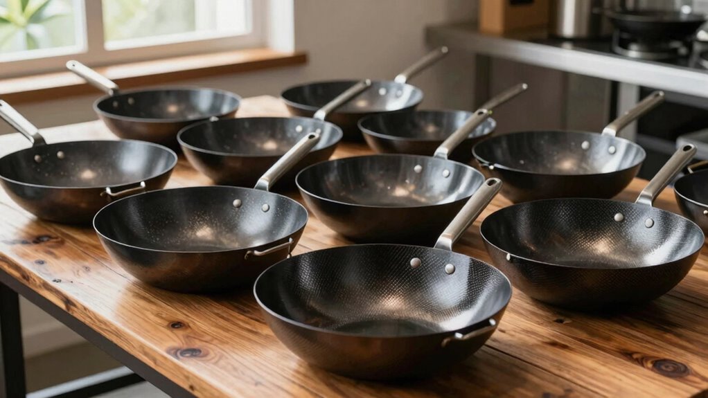 Did you know that carbon steel woks heat up to 60% faster than traditional cast iron? Choosing the right one can truly elevate your cooking game. Whether you prefer a lightweight design or a sturdy hammered finish, these top options have you covered. Investing in the right wok not only saves time but also enhances flavor. So go ahead, pick one and start stir-frying your way to delicious meals!
