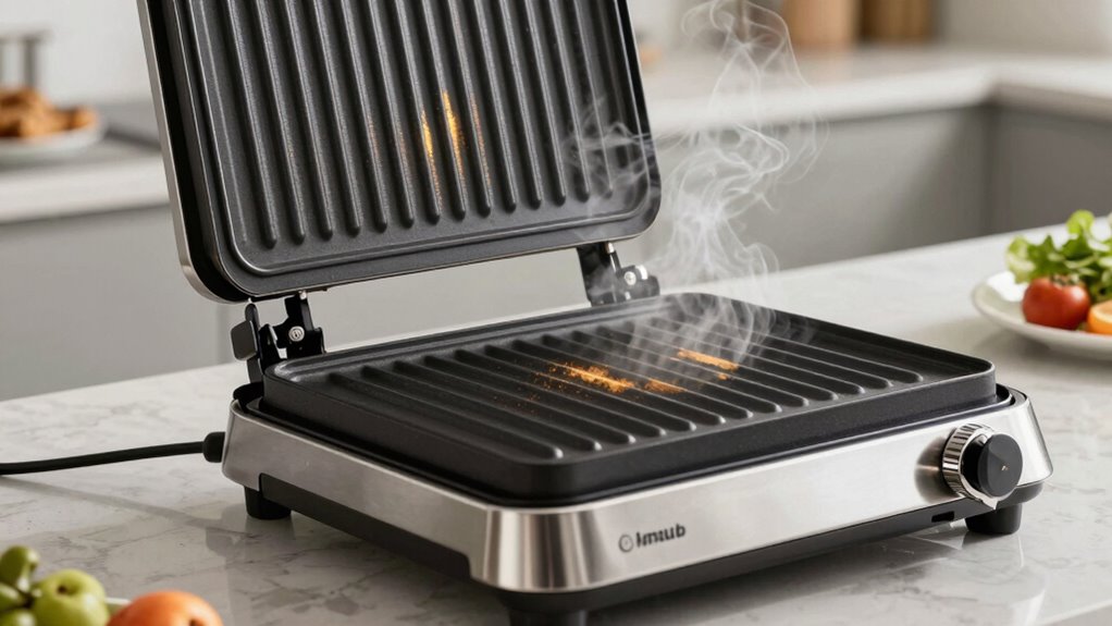 Imagine cooking as tuning a musical instrument—that’s what adjustable temperature control does for these grills. Yes, they support it. I once used a grill with this feature, and I loved how I could perfectly crisp my sandwiches without burning them. Most models now let you dial in the exact heat you need, giving you flexibility for everything from melting cheese to grilling meats.