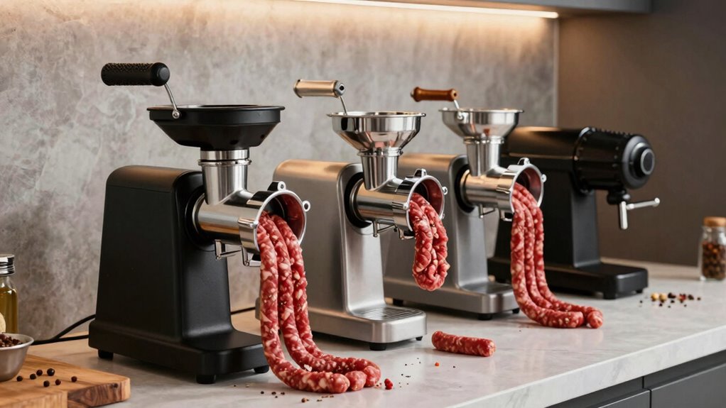 Did you know that over 60% of home cooks now prefer making their own sausages? Choosing the right meat grinder can transform your culinary experience, making it easier and more enjoyable. Whether you’re a beginner or a pro, selecting a reliable grinder guarantees fresh, tasty results every time. So, invest in the right equipment and start creating delicious, customized sausages that impress family and friends alike!