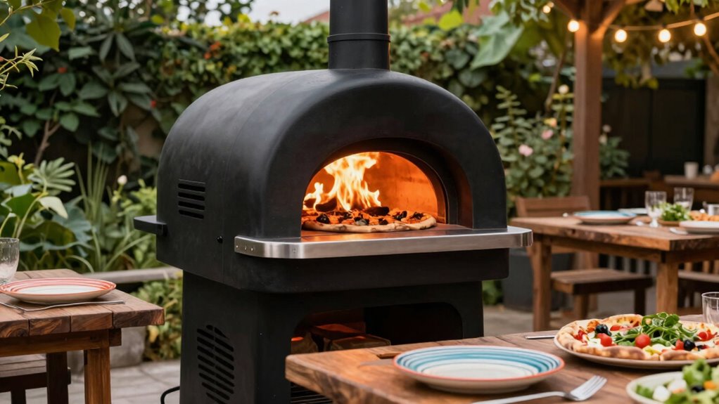 Portability and mobility are essential factors to take into account, especially if you plan to use your outdoor pizza oven in different locations or have limited storage space. Lightweight models, weighing between 25-42 pounds, make transportation straightforward. Foldable legs and collapsible designs allow you to set up and break down quickly, perfect for outdoor gatherings or camping trips. Built-in handles and side grips help you maneuver the oven with ease, reducing strain. Compact dimensions, typically under 30 inches in length and width, ensure it fits neatly into small storage areas or vehicle trunks. Many portable options also feature wheels or casters with locking mechanisms, offering stability during use and effortless mobility when relocating. These features make outdoor pizza ovens more convenient and versatile for various settings.
