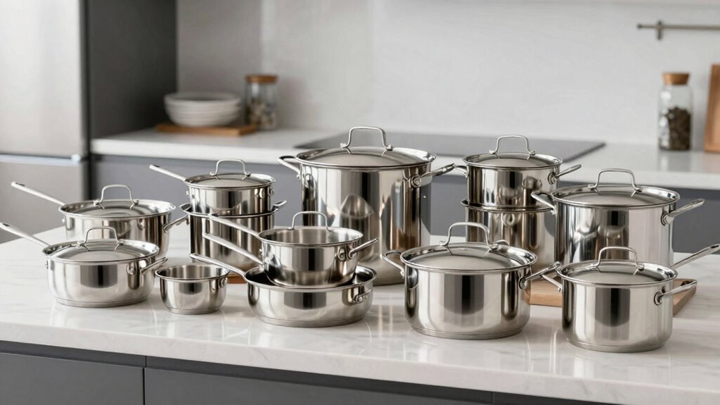 Choosing the right stainless steel cookware set under $500 can truly elevate your cooking game. Did you know that stainless steel cookware is among the most durable and preferred by professional chefs? Whether you go for a versatile 11-piece set or a compact 6-piece, investing wisely guarantees years of reliable performance. Remember, considering factors like size, lid types, and handle comfort helps you find the perfect match. Happy cooking!